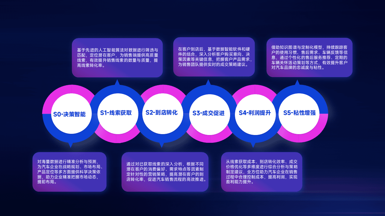 通过拓宽潜在客户来源、、优化线索分配并提高到店转化率,,,,以增强销售效率。。同时,,,利用线索数据不断优化分析模型,,,,有效提升转化率,,,扩大营销影响力。。。。